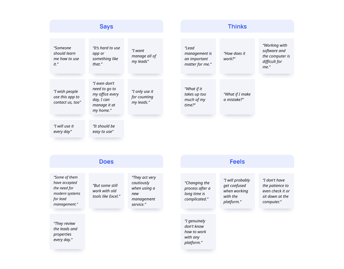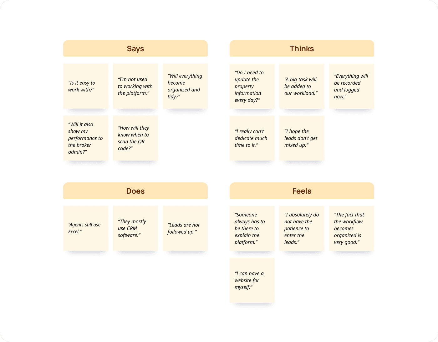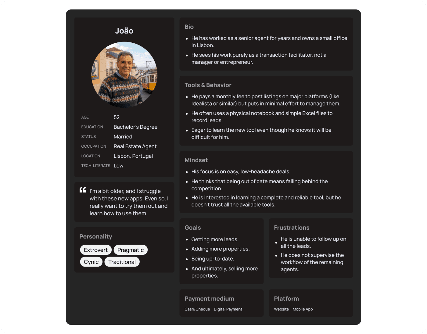 To gain a deep understanding of how real estate agents in Portugal manage their leads, listings, and communication with clients, we conducted exploratory interviews with potential users.