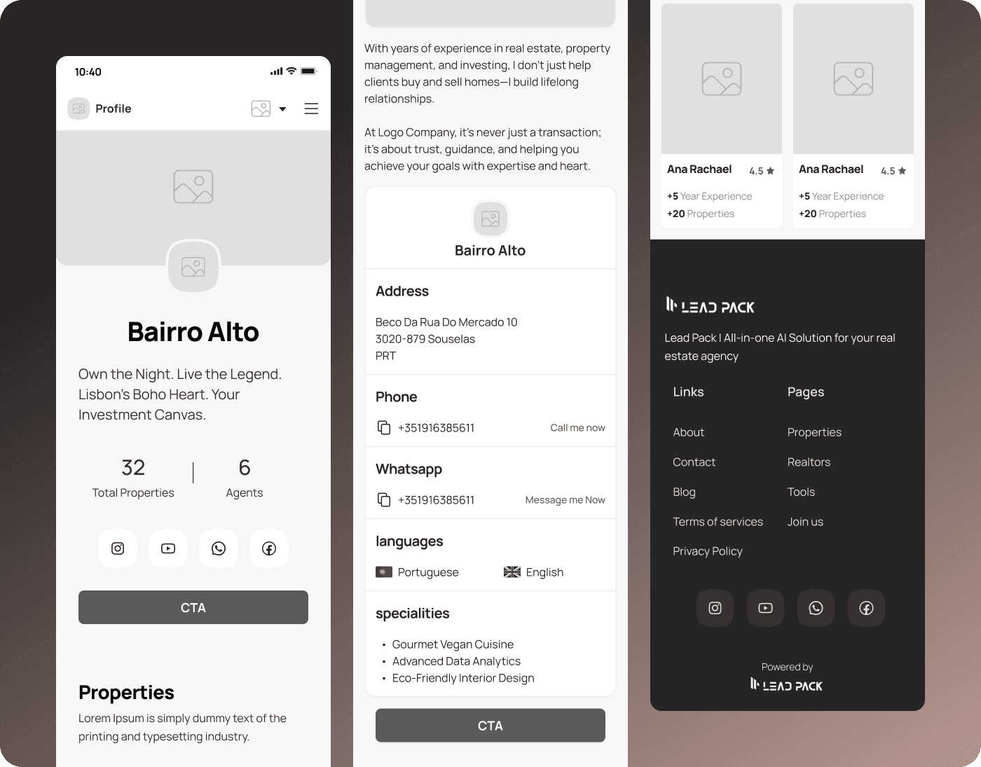 For the LeadPack application's core functionality and user experience, we executed an iterative, low-fidelity prototyping phase. This ensured that the foundational architecture was robust and aligned with the critical needs of real estate professionals and their clients. The process was strategically involved: